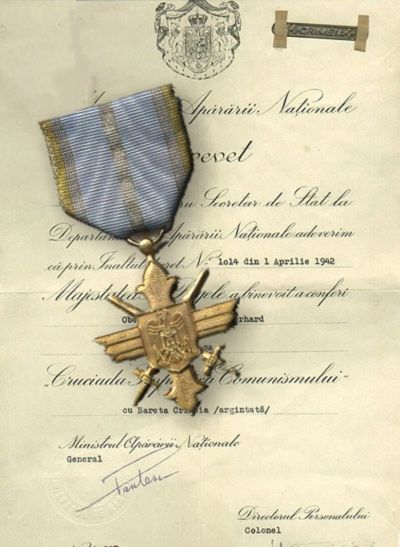 Il reçoit la Mihai Viteazul Order Class III le 31 août